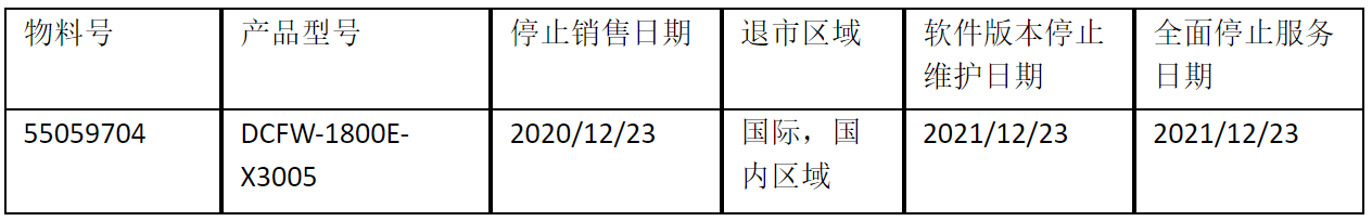 北京神州數(shù)碼leyu.樂魚信息技術(shù)有限公司正式通知您, 以上DCFW-1800E-X3005下一代防火墻(55059704)將于2020年12月23號停止接收新的訂單(具體日期見上表),不再供貨。給您帶來的不便,敬請?jiān)彙?/font>